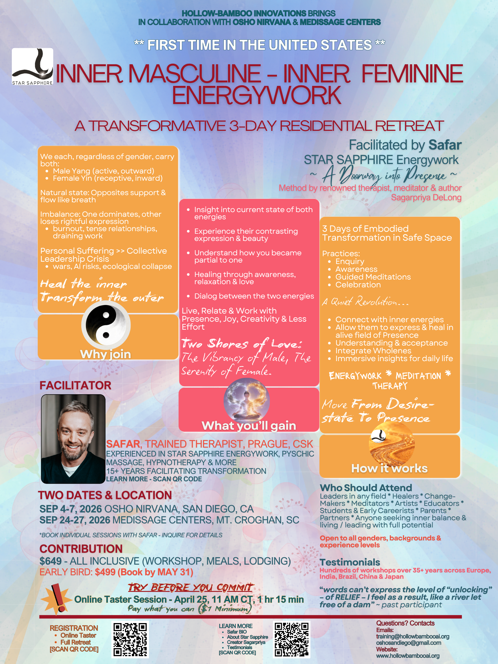 Star Sapphire Energywork brings ancient wisdom for masculine-feminine integration, healing, and balance to the United States for the first time.